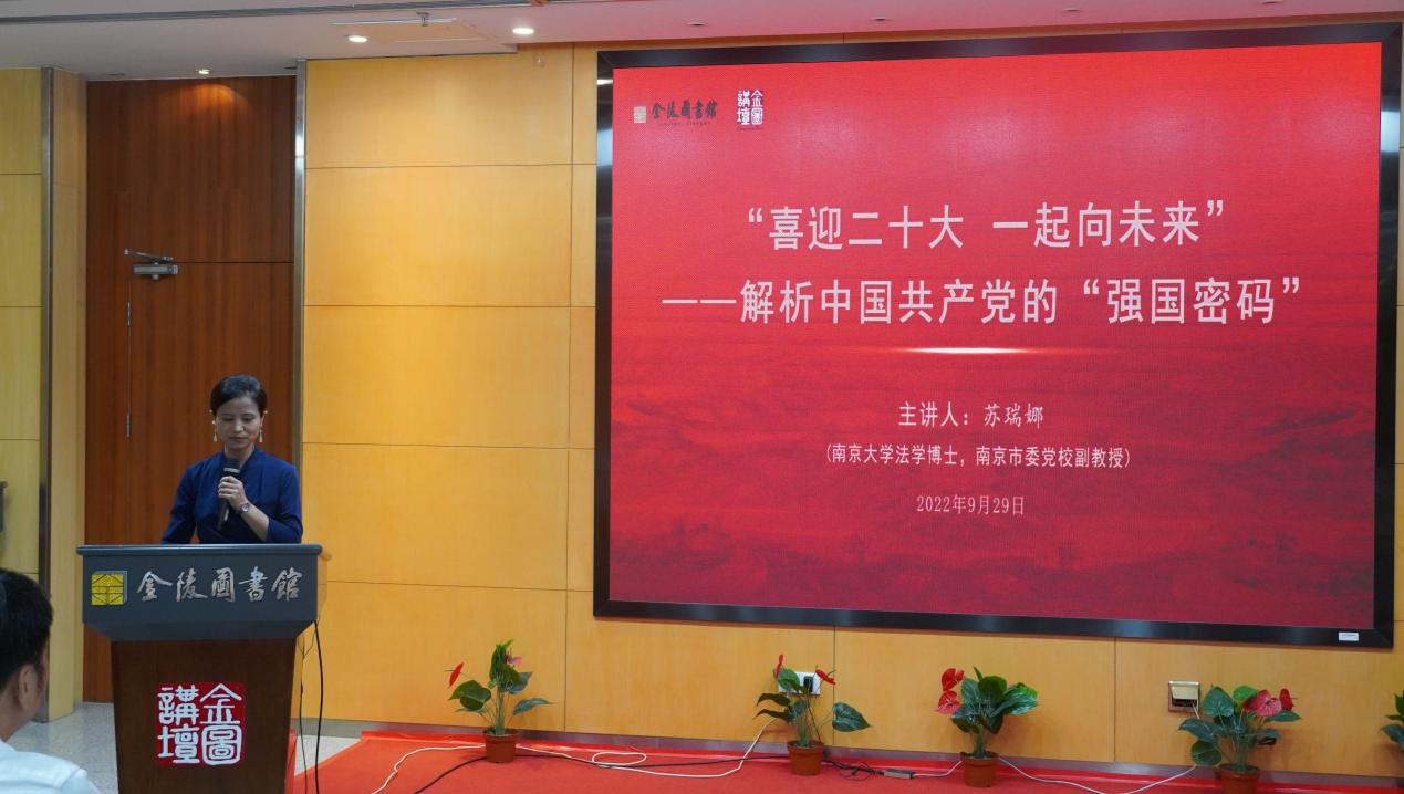 在中国共产党的领导下,中华儿女团结一心、万众一心、开拓创新,不断取得令世界瞩目的骄人成绩。风展红旗如画,朝霞红日喷薄,我们正在谱写中华腾飞的历史画卷。9月29日下午2:00,“金图讲坛”诚邀市委党校苏瑞娜老师主讲“喜迎二十大 一起向未来”——解析中国共产党的“强国密码”。