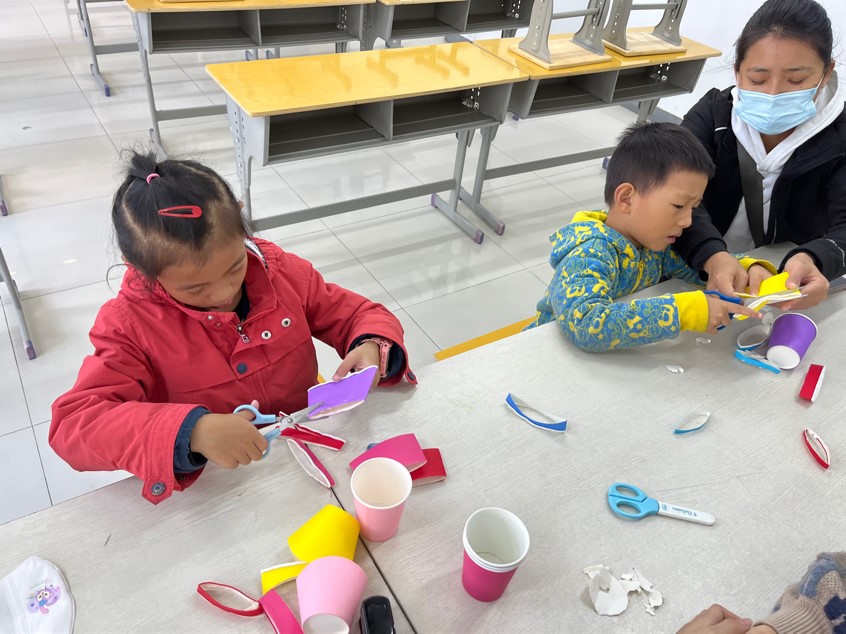 传统的鱼灯制作过程较为复杂,考虑到孩子们都是初次接触,老师在传统鱼灯制作材料上进行了调整,将原来的竹篾和糊白纸替换成纸杯和订书针。这样,制作难度降低的同时,也增强了小朋友的兴趣。