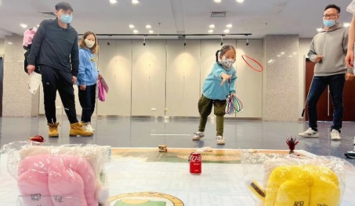 另一侧的惊喜套圈区也不甘示弱,国图山海经马克杯、金图吉祥物玩偶等热门礼品吸引了许多跃跃欲试的小朋友们大展身手。