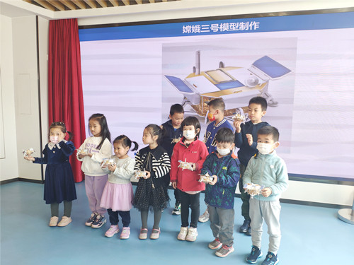 讲解结束后,老师还专门准备了“嫦娥”三号的模型让小朋友们制作。小朋友们都兴致勃勃,按照制作流程,一步步地去认真还原“嫦娥”三号。很快,一个个“嫦娥”三号模型制作完成。比起图片,触摸到立体的模型更让小朋友们兴奋,感觉自己也像参与到了“嫦娥”计划中一样。