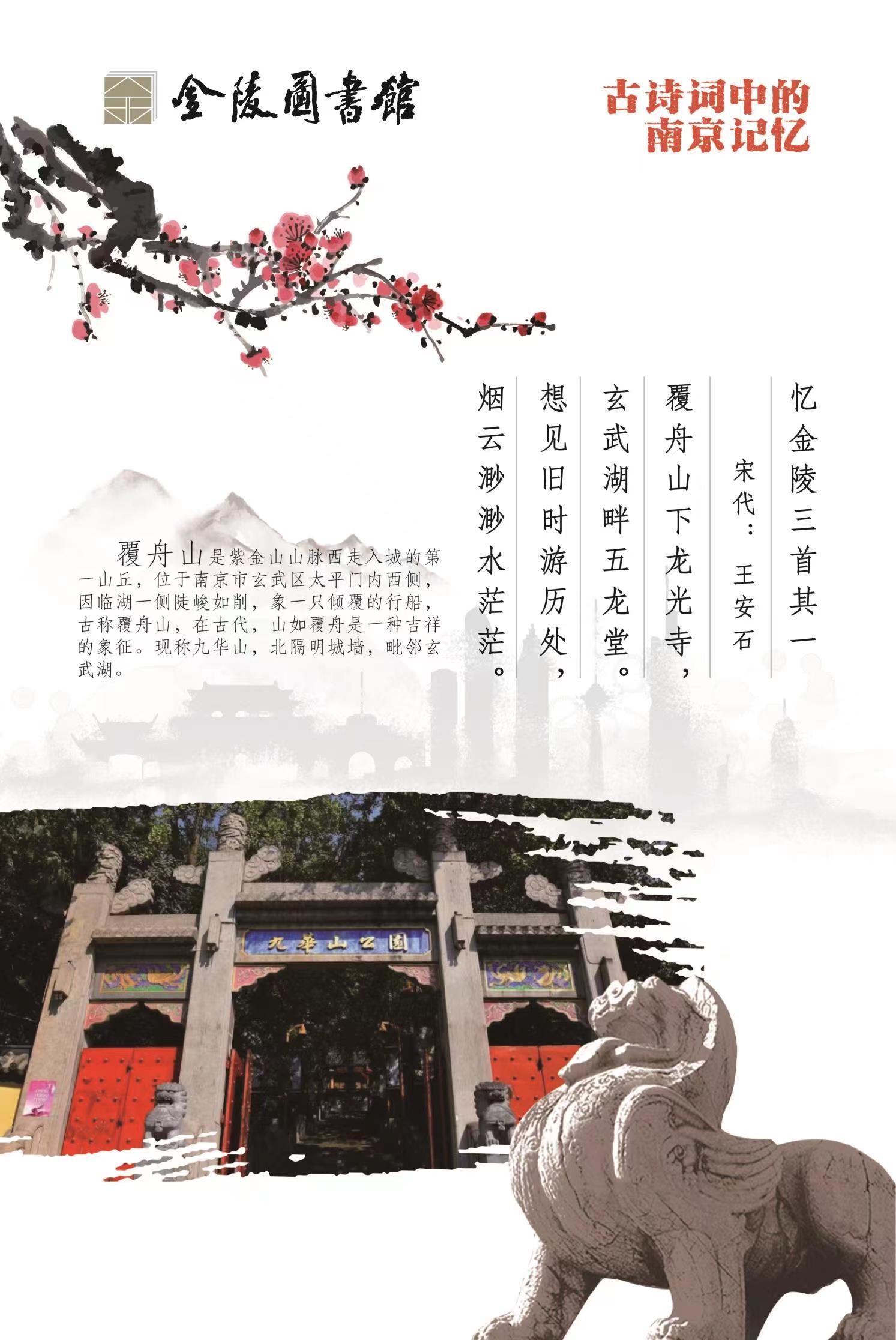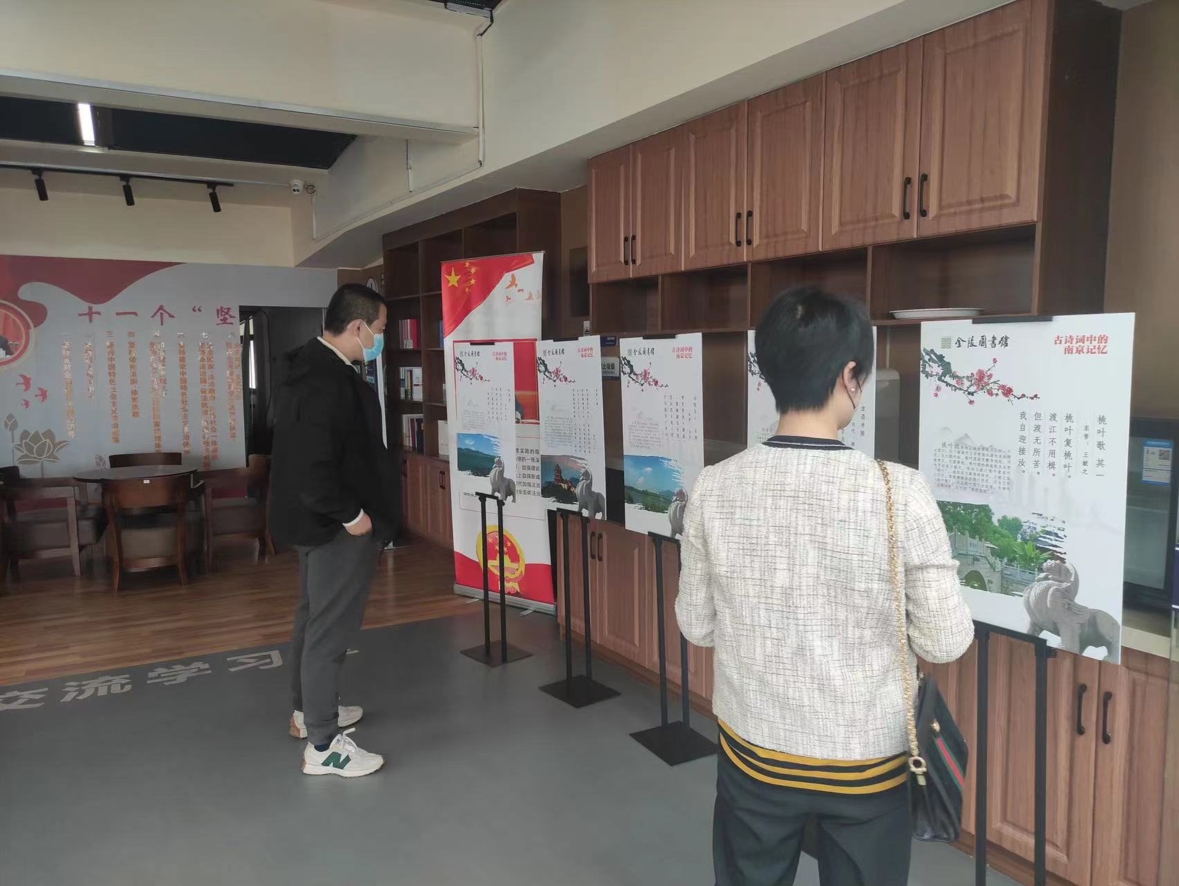 金陵图书馆精选了百余首诗词名篇,整理制作了“古诗词中的南京记忆”图片展,并于10月开始在金图馆外服务点进行巡展,现已在南京市公安局特警支队和建邺区公安局莲花分局开展了活动,后续还将在南湖消防救援站等十余个服务点进行展出。