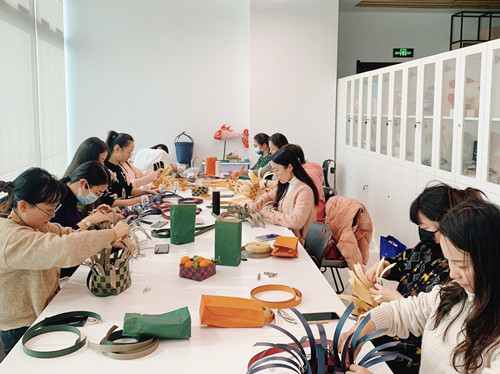 编织的课程,其实一直都在金图手工坊的计划中。早在2017年手工坊就尝试过使用纸藤来制作置物筐,效果不能说不好,但距离我们心目中的目标尚有一些距离。这几年编织材质又悄然流行起来,比如Salome就推出了配色丰富大胆的时尚“菜篮子包”,于是手工坊的老师们又动起了编织包的心思。