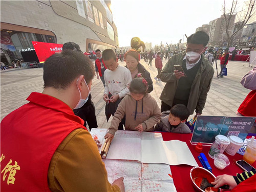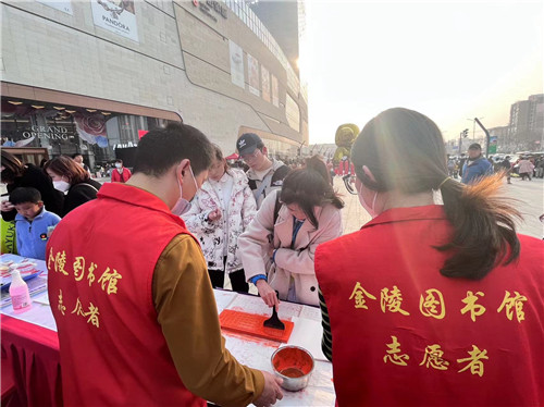 金陵图书馆青年馆员志愿者当天将免押金办证、数字阅读推广、书服到家推介、雕版印刷体验等文化志愿服务带到活动现场,充分发挥了公共图书馆作为全民阅读推广、优秀文化传承主力军的作用。活动中,金陵图书馆志愿者还向来到我馆展位的省、市相关领导详细介绍了我馆图书借还、数字阅读、信用网借、科普阅读推广等方面的工作。