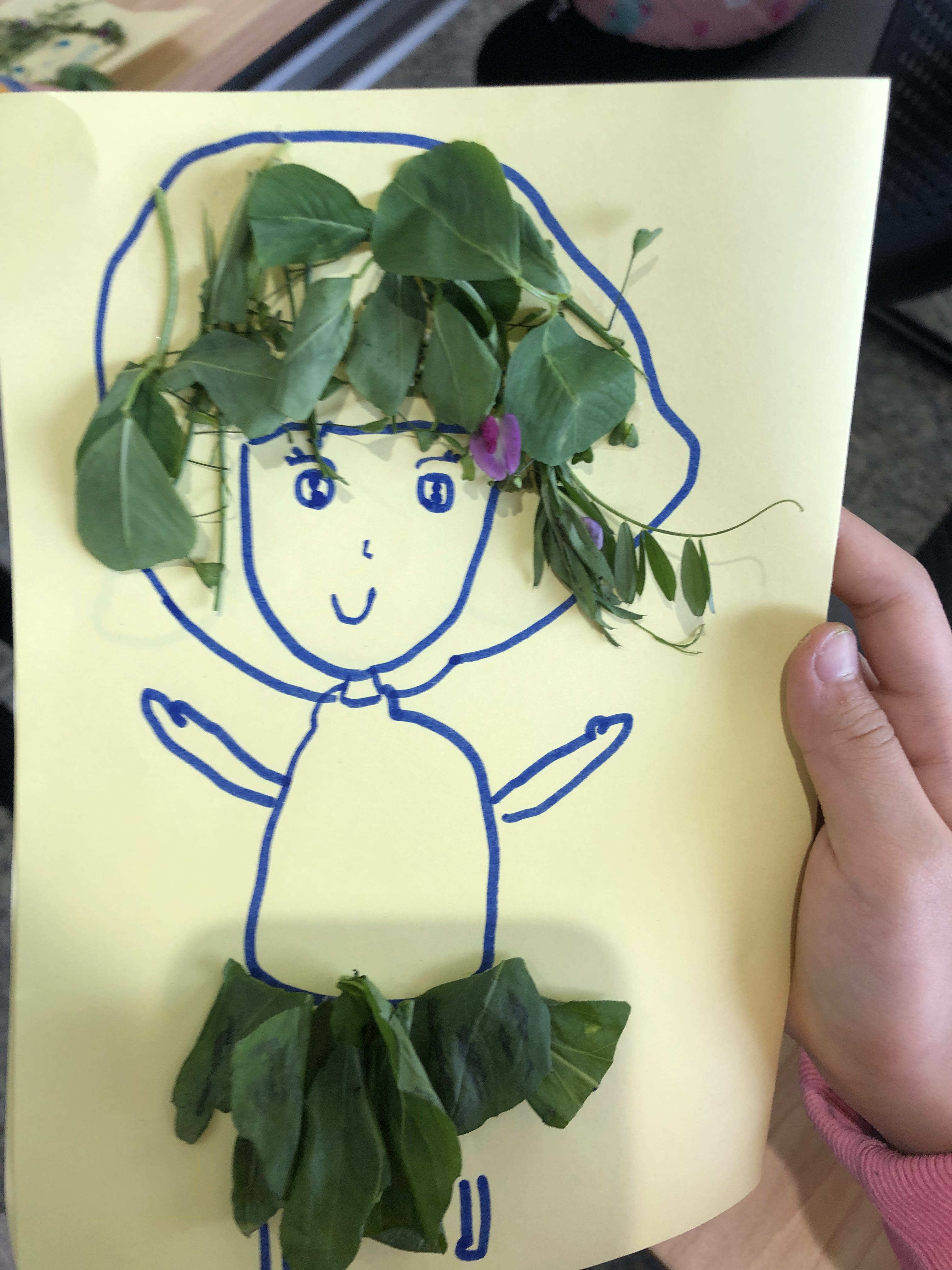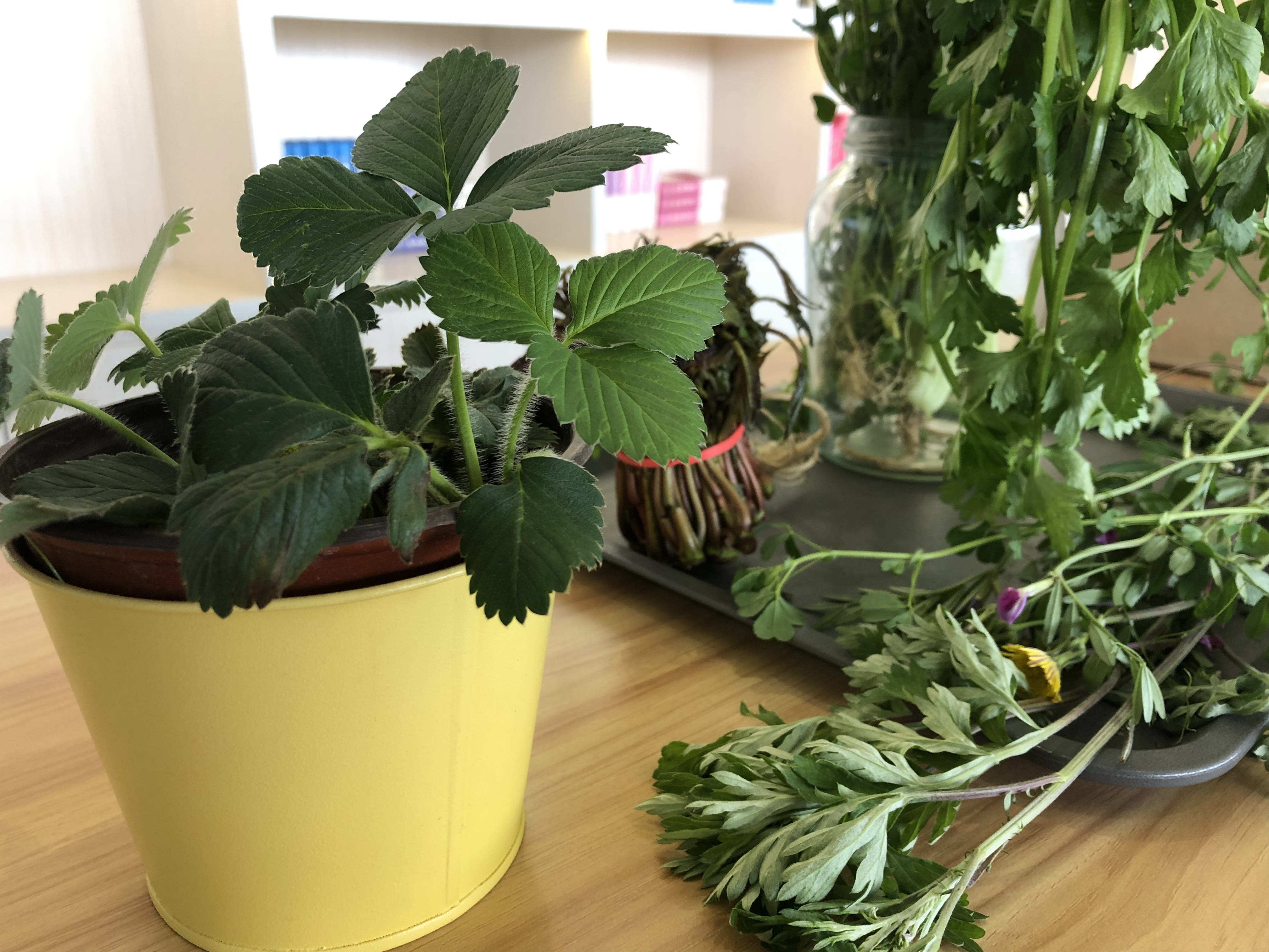 王老师从“春天”说起,讲解小草的颜色、形态、到用途以及观察辨别,延伸到中国古诗词中的草、爱野菜的古人、爱野菜的南京人......在王老师的引导下,同学们学习观察野菜,初步了解野菜的种类,挖掘野菜背后的字句。老师以一系列生动有趣的小问题,让同学们对野菜有了全新的认识和更深的了解。课程中,同学们不时提出各种有趣的问题,与老师互动交流,最后,同学们利用各种野菜在现场DIY绘画作品,活动现场气氛热烈。