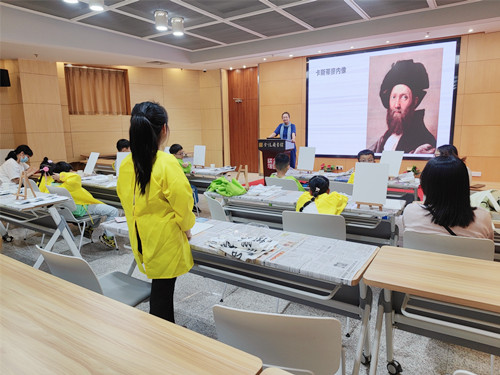 本节课的主题是“文艺复兴时期的绘画”。心玥老师为小朋友们简述文艺复兴的历史背景及形成原因,然后介绍了文艺复兴时期代表人物,画作简介及赏析。最后,心玥老师带领小朋友们临摹米开朗基罗的经典作品。