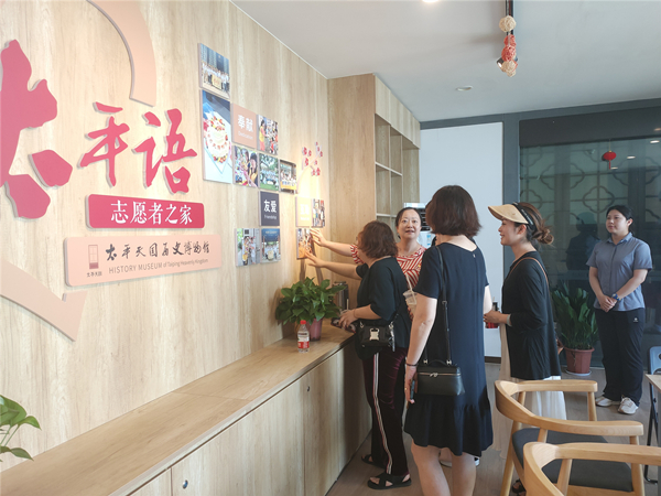 杨峥副馆长一行首先参观了太平天国历史博物馆“太平语”志愿者之家。张琳笛主任介绍了志愿者管理办法、“国际博物馆日”等节假日及平时的文明引导等工作情况。