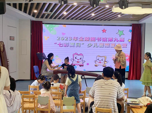 7月30日上午十点,金陵图书馆第九届“七彩夏日”少儿暑期夏令营之“紫藤萝大舞台”活动在我馆低幼绘本区准时开启,来自南京市妇女儿童活动中心的师生们为我馆小读者带来了一场精彩的器乐专场演出。