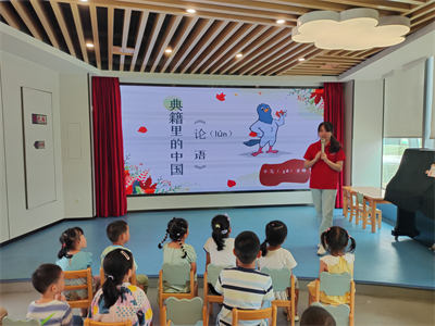 《论语》是中国儒家的经典作品,是我国伟大的思想家、教育家孔子及其弟子智慧的结晶。“学而时习之,不亦说乎,有朋自远方来,不亦乐乎。”论语开篇就阐述了治学应具备的态度和方法,简单的话语蕴藏着博大精深的智慧。本期“红蜻蜓国学堂”活动,老师带领小朋友穿越千年的历史,遇见孔子,对话孔子,解读不一样的《论语》。孔子是什么性格的人,是聪慧睿智、严肃古板、幽默有趣,还是热血豪情?孔子和哪个学生是亲戚,孔子最喜欢的学生是谁,孔子有什么烦恼,孔子周游列国是为了游山玩水吗?活动开始,老师就为小朋友们介绍了孔子不为人知的小秘密,从孔子的生平轶事中,小朋友们认识了和课本里不一样的孔夫子。在课本中,孔子是个白发飘飘、慈眉善目、温文尔雅的老先生,但是,真正的孔子身高近两米,是个力大无穷、武艺卓绝、有着远大理想和抱负的热血战士。在趣味历史环节中,小朋友知道了原来孔夫子生气也会骂人,怼起人来更是畅快淋漓,让人忍俊不禁,赞不绝口!老师用幽默风趣的语言为小朋友展示了可敬可爱、豁达乐观、栩栩如生的孔子形象!在老师的精彩演绎下,小朋友们听得津津有味。在角色扮演中,老师和小朋友分别扮演孔子和学生,还原了古代师生间的学习和生活的场景。在表演中,小朋友们了解到孔子是一位对学生因材施教、公平公正,仁爱宽容的老师。本次活动,老师带着孩子们发现了论语的乐趣。正所谓读书百遍,其义自见,作为传世国学经典,《论语》值得小朋友们反复阅读和揣摩。