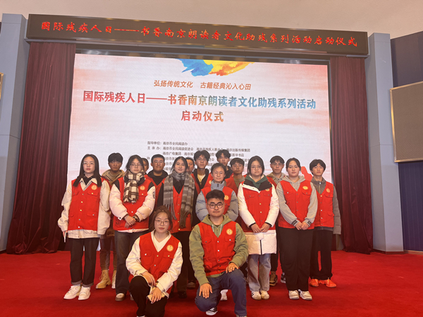 2023年12月3日是第32个“国际残疾人日”,12月5日是第38个“国际志愿者日”。在“国际残疾人日”和“国际志愿者日”前夕,2023年12月2日下午,三百余位残障读者和爱心人士在金陵图书馆报告厅温暖相聚,参加“国际残疾人日——书香南京朗读者文化助残系列活动”启动仪式。金陵图书馆“阅美”志愿服务队、来自南铁运输管理学院的志愿者们承担了引导、搀扶、礼仪等现场服务。