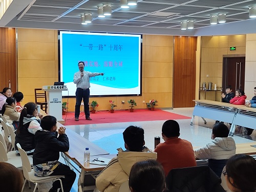 岁序交替启新程,万象更新再出发。2023年,诗游南京系列活动以层林尽染的梅花山为起点,“壶中天地”般的芥子园为终点,8期活动带领众多读者行走南京,感受文化。2024年1月20日,在金陵图书馆报告厅内顺利举办《一带一路 十年成就文化自信》主题讲座暨诗游南京总结会,回顾一年来的活动经历,也为广大读者讲述“一带一路”十年来中国如何展现大国担当和文化自信。