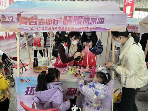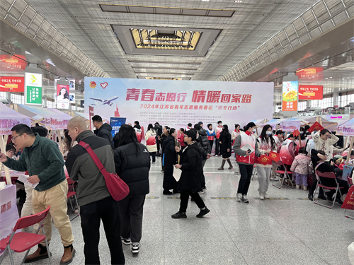 1月26日,“青春志愿行·情暖回家路”2024年江苏省青年志愿服务春运“暖冬行动”在南京南站启动。活动现场开设春运“暖冬行动”志愿服务市集,以“暖心回家路”“健康回家路”“文化回家路”“平安回家路”等为主题,南京市20多支青年志愿服务团队320名青年志愿者参加集中服务活动,为广大旅客送文化、送健康、送科技、送祝福,让匆忙而寒冷的归途充满融融暖意。