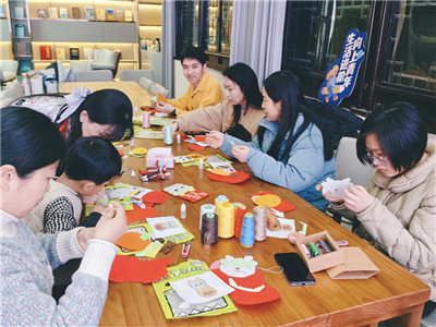 本次金图手工坊带着不织布生肖红包来到青年夜校,这个夜晚,大家拿起很久不用的针线,一起制作这只可爱的生肖红包。本次课程我们根据夜校课程的时长,设计了缝制和酒精胶粘贴结合的制作方法,这样在保证课程趣味的同时也大大的节约了时间。一开始大家对着面前的针线和各种形状的裁片都有些不知所措,但在老师的指导下,很快就开始缝制了,虽然开头总有些小问题——线打结啦、线尾的绳结太小从不织布里穿出来啦、裁片边缘没有对准啦、针脚没有拽紧导致浮线啦,都是新手常遇到的问题,对这些问题的解答老师可以说驾轻就熟,很快的大家就都掌握了基本方法,开始一针一线的制作起来,学的快的同学还会主动为其他人讲解和示范,虽然大家是第一次见面,但相处的仿佛是认识依旧的朋友,欢声笑语不绝。