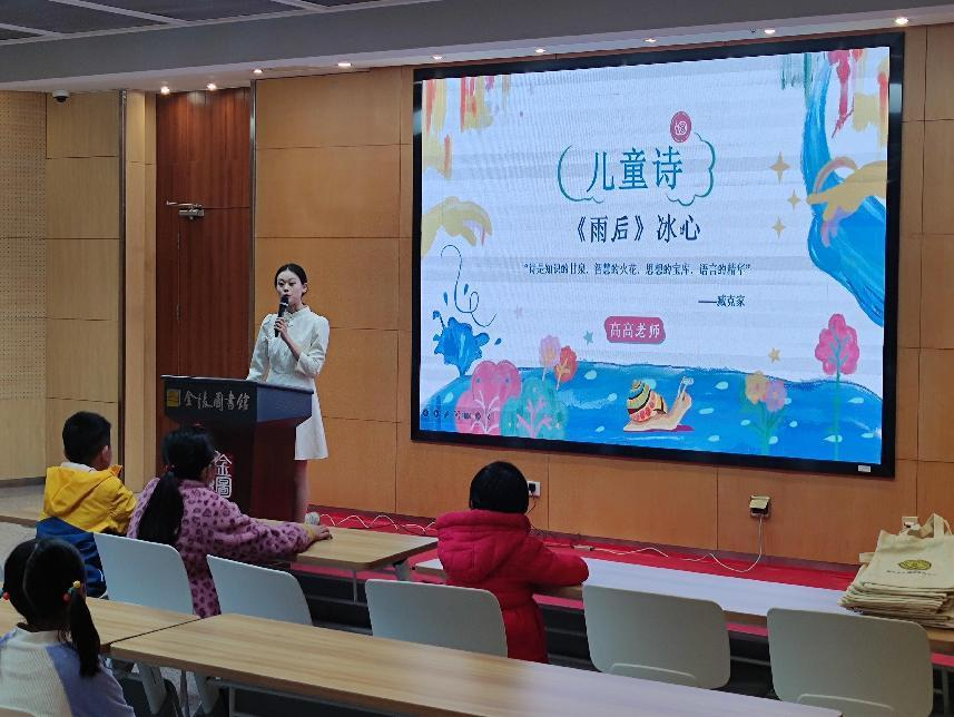 2024年3月17日上午,在“3·21世界诗歌日”即将到来之际,金陵图书馆“童·阅底色”少儿阅读素养养成记之“朗诵记”的第二课在多功能厅圆满完成。