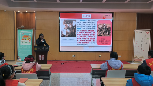 在培训中,周老师以雷锋的故事开始说起,讲解奉献精神的重要性,并带领小读者们声情并茂地朗诵《小小图书馆》,以此加深小读者们对于志愿服务的理解。周老师同时还在现场为小读者们展示了如何使用金陵图书馆的检索系统,查找以“雷锋”关键词的图书,小读者们认真学习,纷纷讨论着以后成为志愿者,也要教会大家使用图书检索系统。