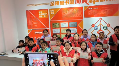 值得一提的是,为积极倡导“绿色阅读,好书共享”的文化理念,金陵图书馆还特别设立了“爱心捐赠书屋”,接受社会各界和个人的图书捐赠,开展图书交换漂流、乡村文化服务等公益活动。本次活动的尾声,周樱格老师带着孩子们来到了金图“阅美”志愿天地(志愿者之家),同学们认真学习志愿精神,积极捐书奉献爱心。让好书在漂流中再次发挥生命光彩,在全社会营造全民阅读氛围。