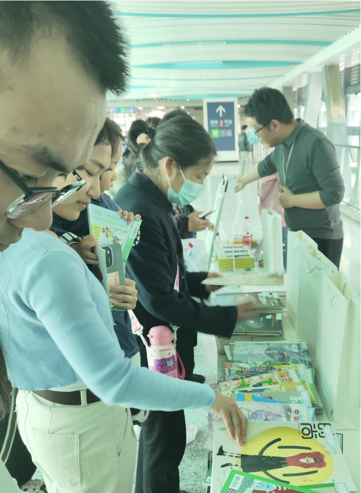 此外,金陵图书馆与句容市图书馆还特别推出了书刊漂流活动。活动现场,工作人员热情地向乘客展示了参与漂流的图书和杂志,并耐心地解释了漂流活动的细节,鼓励大家挑选自己感兴趣的读物。这些图书和杂志覆盖了各种主题,从文学、历史到科技、艺术,吸引了不同年龄和兴趣的乘客驻足。年轻人倾向于探索科技和流行文化的最新趋势,而中老年乘客则更多地关注法律、经济和健康类的书籍,孩子们则兴奋地挑选着色彩鲜艳的图画书和漫画杂志。每个人都在这片知识的海洋中找到了属于自己的宝藏。