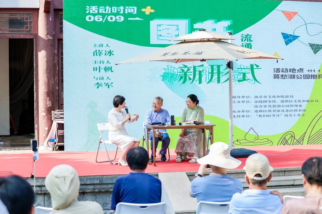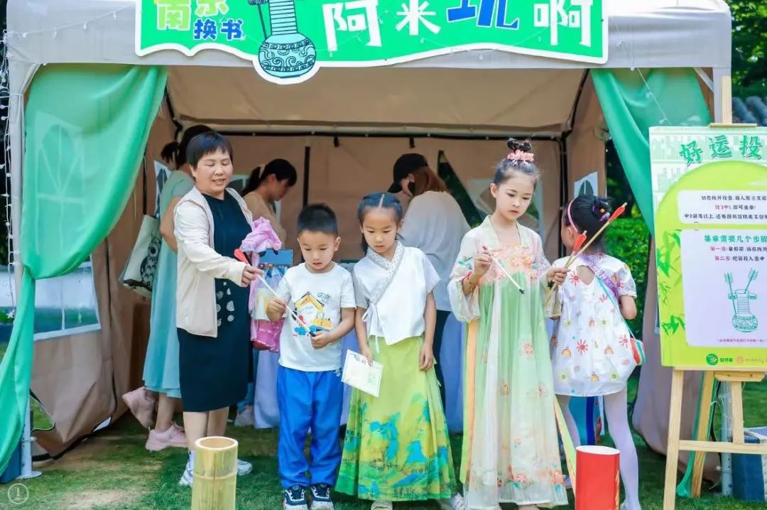 6月9日,在南京市文化和旅游局的指导下,金陵图书馆联合建邺区文化和旅游局、莫愁湖公园管理处、“我们的节日”南京工作室等多家单位在莫愁湖公园举办了一场“我来南京换书”——“益书来”阅读服务活动,吸引了近万名市民游客现场参与,为市民游客奉送出多重“端午”大礼。