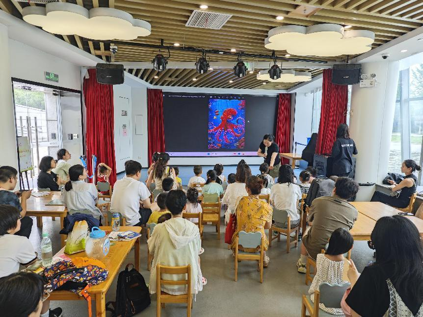 2024年7月6日的上午,金陵图书馆举办了一场别开生面的“绘本之旅”活动,吸引了众多家长和小读者们的热情参与,活动现场座无虚席。来自南京市奥星幼儿园的杨老师和薛老师作为本次活动的主讲人,为小朋友们讲述了《蛤蟆爷爷的秘诀》的故事。