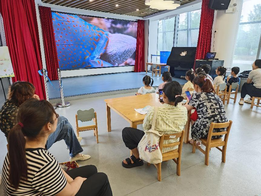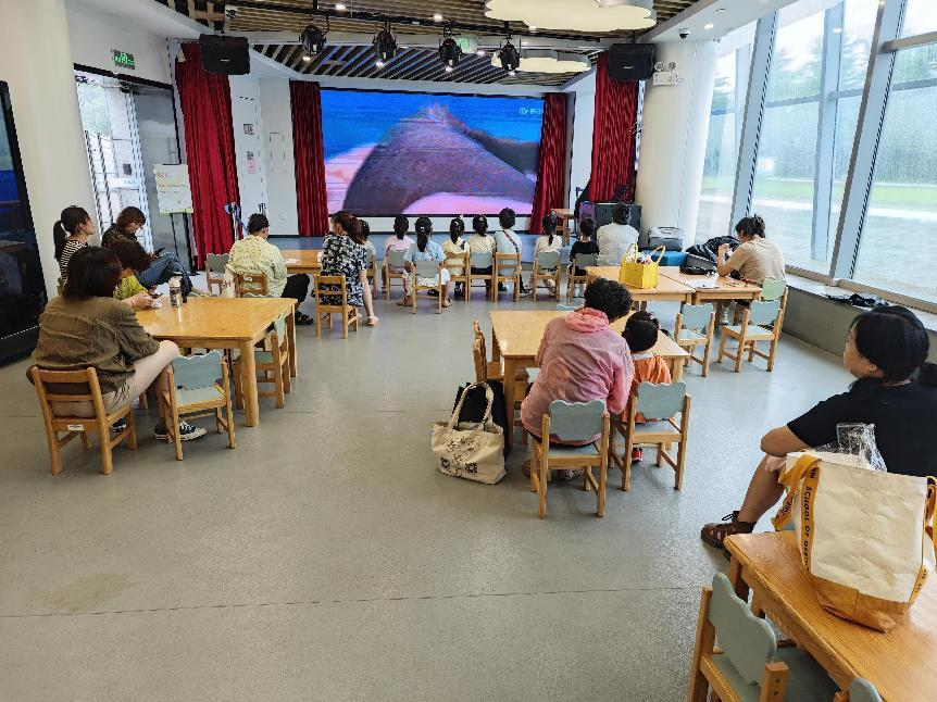 2024年7月11日上午,今天是“七彩夏日”少儿暑期夏令营之“柠檬草电影院”第一期活动,即使下着倾盆大雨,依然有10多位小朋友们准时与我们相约金陵图书馆少儿低幼绘本区,参加本场活动。本场活动播放的影片是纪录片《蓝色星球——同一片海洋》。