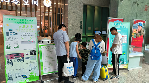7月13日-15日,金陵图书馆联合南京农业大学人工智能学院,在金陵图书馆大厅内开展一场农业智能化技术科普展。现场展示来自南京农业大学人工智能学院实验室研发的自动棉花打顶机器人、蘑菇巡检机器人、自动巡游灌溉小车等多个涉农交叉领域科研成果。展览以丰富的图片、通俗易懂的文字以及现场实物讲解,向参观者介绍了农业智能化技术的发展。