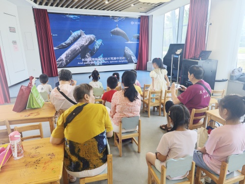 2024年8月1日上午,“七彩夏日”少儿暑期夏令营之“柠檬草电影院”第四期活动开始啦。10多位小朋友准时与我们相约金陵图书馆少儿低幼绘本区,参加本场活动。本场活动播放的影片是纪录片《蓝色星球Ⅱ——深蓝》。