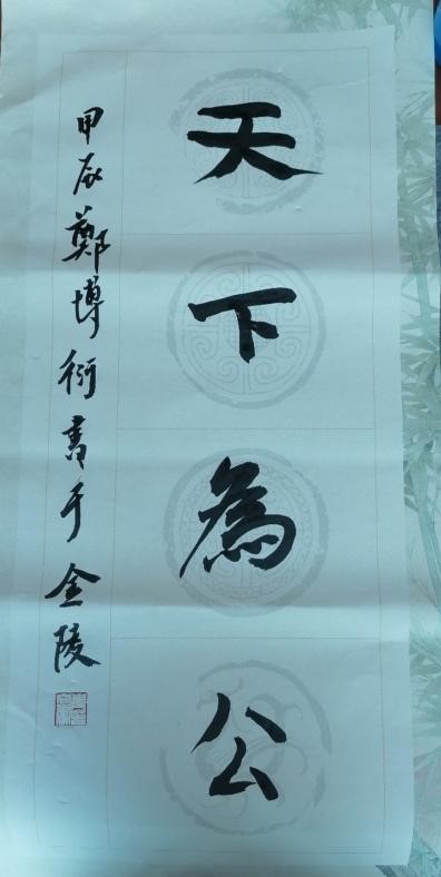 本次习作选择了统一的内容“天下为公”进行练习,其中“为”的繁体字对于一些小朋友还是有些难度,老师不厌其烦地手把地教孩子们去进行书写。一小时的课程很快过去,大家都很好地完成了属于自己的书法作品。