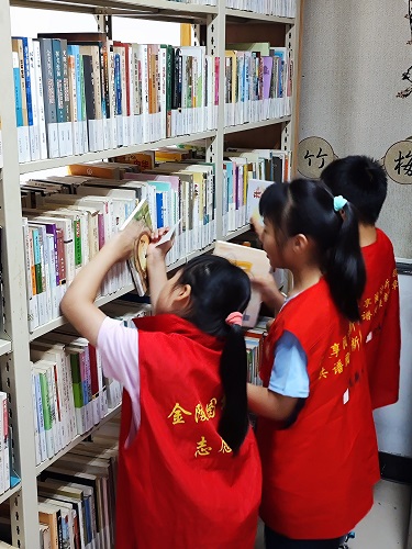 随后,在馆员们的指导下,小管理员们纷纷行动起来,按照分馆的排架规则,对富贵山分馆的书籍进行了整理与排架。经过一番努力,分馆的图书焕然一新,井然有序地排列在书架上,等待着读者的借阅。