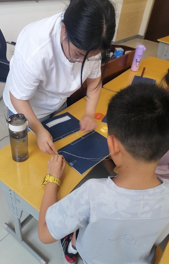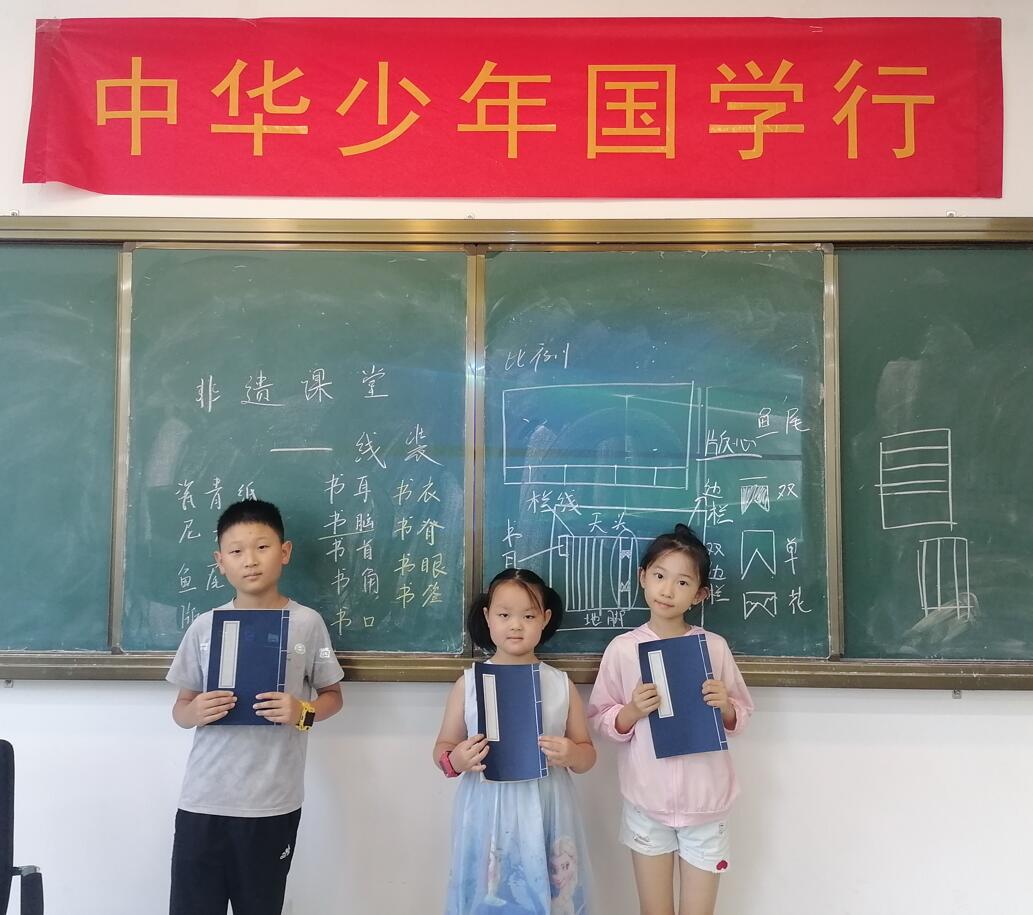 课程伊始,老师给同学们讲解了古籍装帧的历程,以及各种装帧形式的演变。之后老师带领同学们进行了穿针引线的实操练习。同学们根据老师的指导,细心地让针在书眼中穿梭,很快,一本四眼线装古籍就呈现在手中。等同学们都完成了缝制,对于古籍的各个部位,也有了一些印象,老师又将古籍的各种专业名词一一介绍给大家,如:天头、地脚、书衣、书脑、书首等。此举旨在让孩子们在课程中更好地“玩中悟,做中学”。