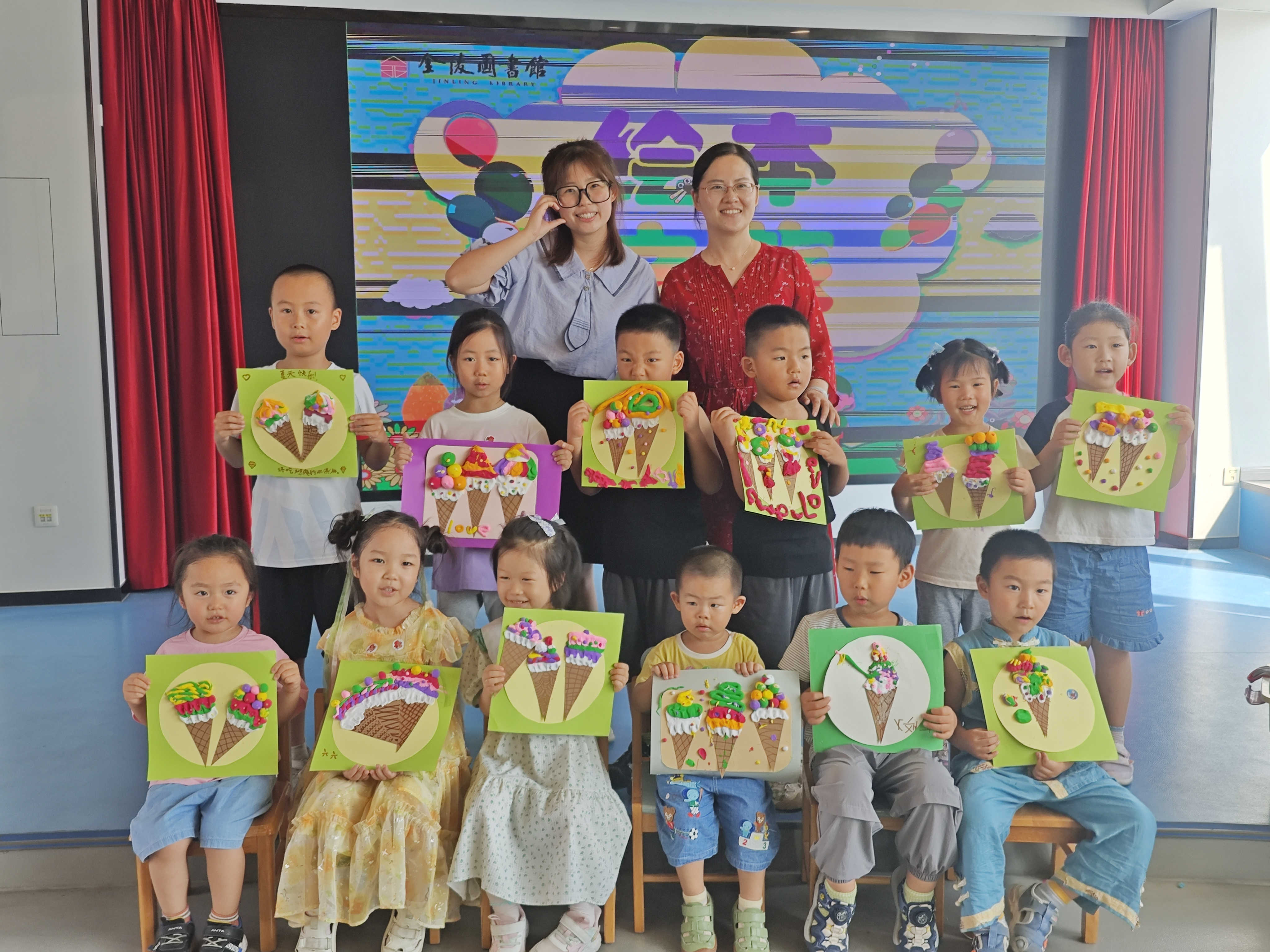 活动当天,老师们还带领小朋友们亲手制作了“冰激淋”。孩子们利用棕色卡纸作为脆筒,用白色超轻粘土塑造出细腻的奶油,再用五彩斑斓的超轻粘土做成冰激淋球和可爱的小糖果。就这样,一个个色彩缤纷、创意十足的“冰激淋”诞生了!完成作品后,小朋友们更是兴奋地登上舞台,向大家展示了他们的手工作品,并分享了创作灵感及他们想把这份甜蜜送给谁的心意。