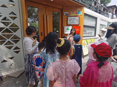 参观实践之后,活动进入沟通与表达能力提升环节。小朋友们纷纷化身为“小小讲解员”,勇敢地站上舞台,选择自己最为喜爱的场馆进行介绍。有的孩子分享了云几书房的静谧与书香,有的介绍了金图·八九零空间里展示的吉祥物品牌创意,还有的用清澈的童声带领大家走进了童·阅空间的童书世界。每一个孩子的讲解都充满了个性与创意,他们不仅准确传达了场馆的特色与功能,更在无形中学会了如何自信大方地展示自我。