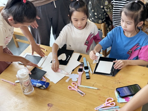老师先带大家欣赏一些已经制作好的相框作品,设计者巧妙地运用了各种材料,创造出了别具一格的造型,具有观赏性。随后,老师开始分发制作材料。首先,用硬纸和彩纸设计相框的框架和背景。硬纸提供了稳定的支撑,而彩纸则让相框的背景更加丰富多彩。接着,用剪刀将彩纸剪成合适的形状,并用双面胶将其固定在硬纸上。接下来是最有趣的部分—用粘土来装饰相框,可以用粘土制作出各种形状的图案,如花朵、星星、波浪等,然后将其固定在相框上,粘土的颜色丰富多样,让相框显得更加生动活泼。