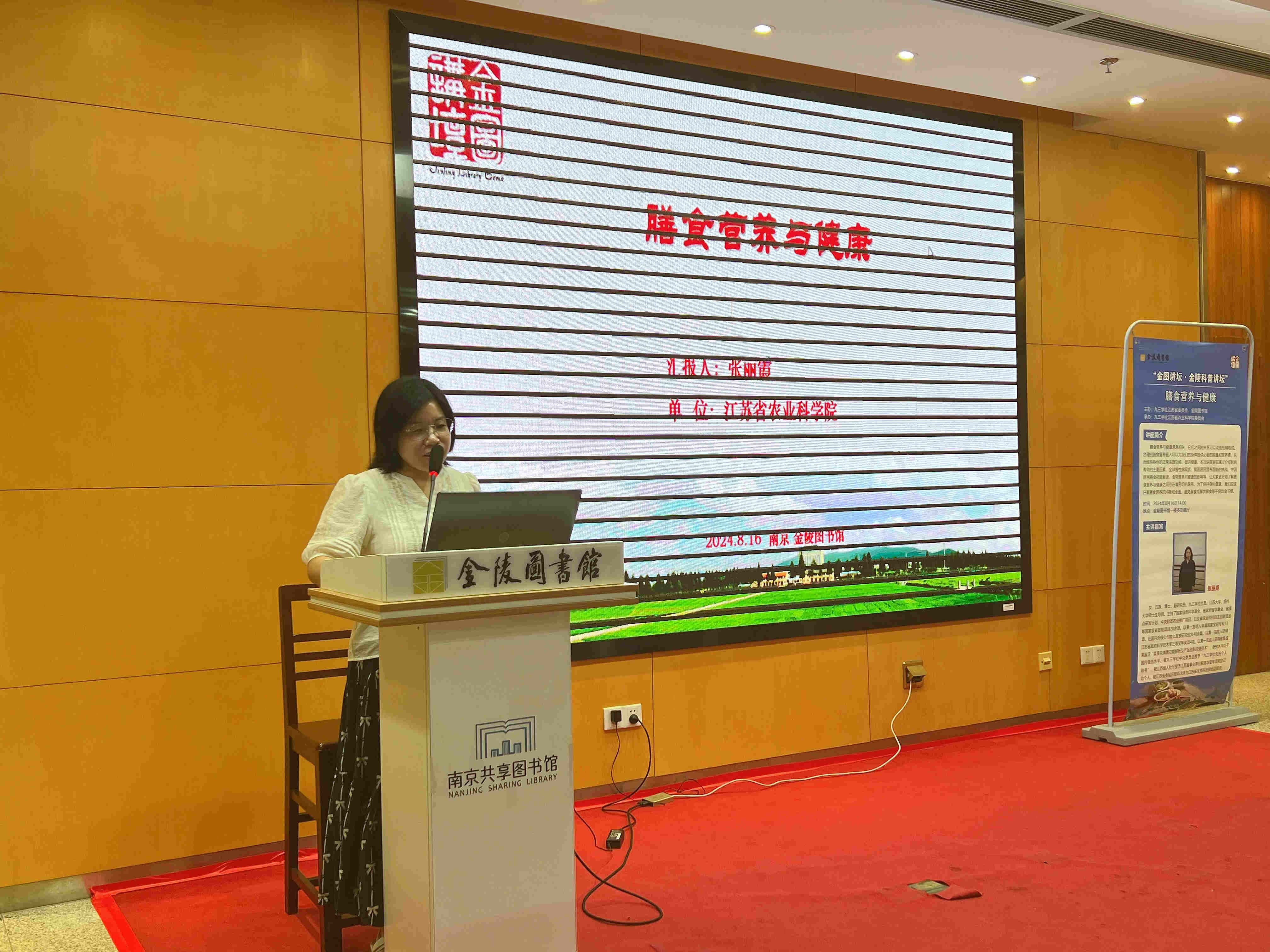 2024年8月16日下午2:00,金图讲坛“金陵科普讲坛”在金陵图书馆一楼多功能厅举办。主办方特邀江苏省农科院农产品加工研究所张丽霞博士主讲“膳食营养与健康”。
