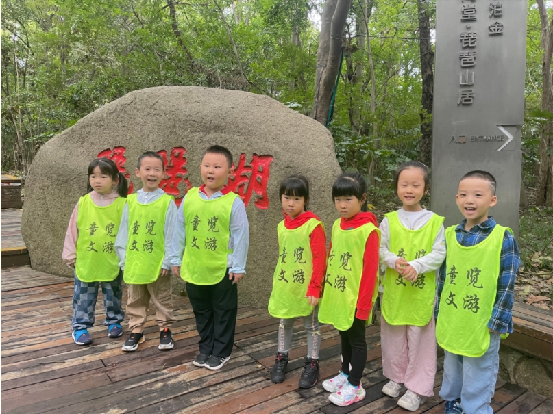 上午9点,小朋友们准时在南京琵琶湖景区门口集合。首先,老师带领孩子们走进展馆参观琵琶湖。琵琶湖,位于钟山南麓,是古燕雀湖的遗留,其形状像一把琵琶,琵琶湖起源于南朝萧梁时期,最早被称为燕雀湖或太子湖。琵琶湖是城墙、山林与湖水的完美结合,琵琶湖城墙是南京明城墙中唯一的一段亲水城墙,“幽湖清溪”是其特色。漫步琵琶湖畔,小朋友在这里可以充分领略到“感受自然,解读历史”的浪漫意境。