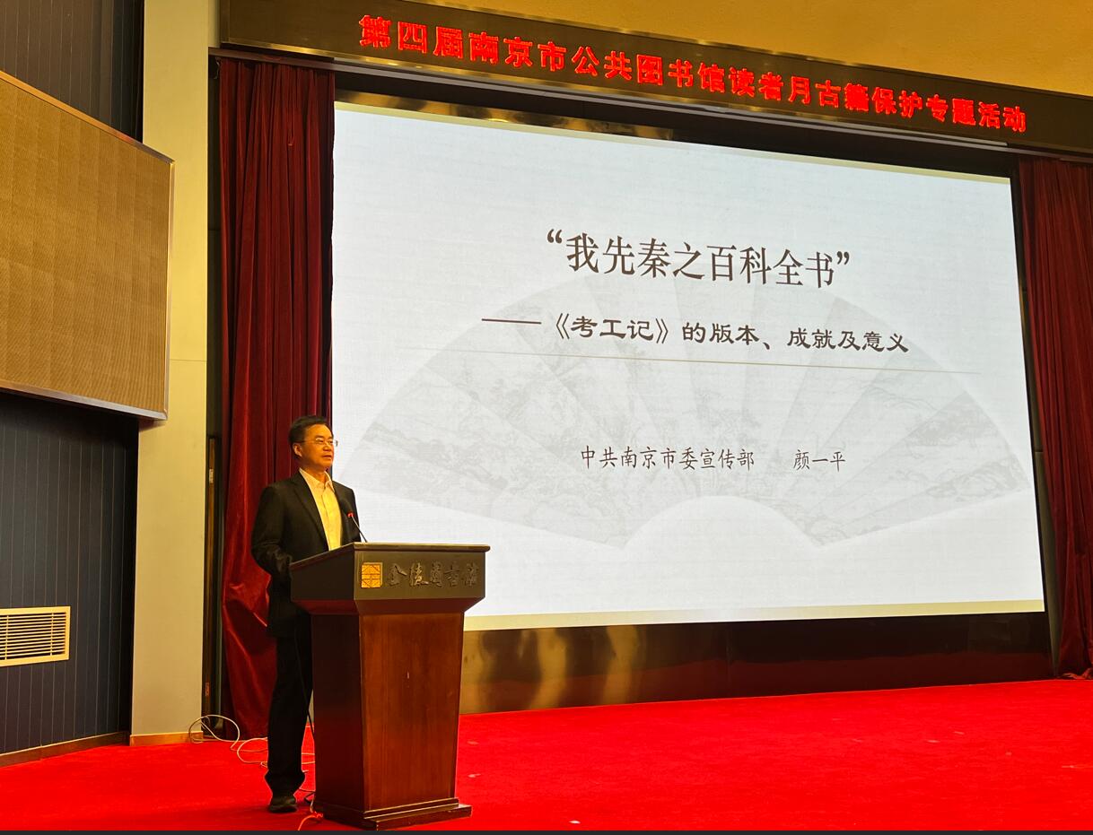 10月10日下午,由南京市文化和旅游局指导,金陵图书馆联合全市13家区级公共图书馆共同举办的题为《“我先秦之百科全书”——<考工记>的版本、成就及意义》的古籍专题讲座在金陵图书馆报告厅成功举办。此次讲座邀请中共南京市委宣传部二级巡视员、南京师范大学社会发展学院兼职研究员、南京历史文化名城研究会副会长颜一平教授作为主讲,吸引了众多学者、古籍爱好者以及各区公共图书馆员前来聆听,现场气氛热烈。