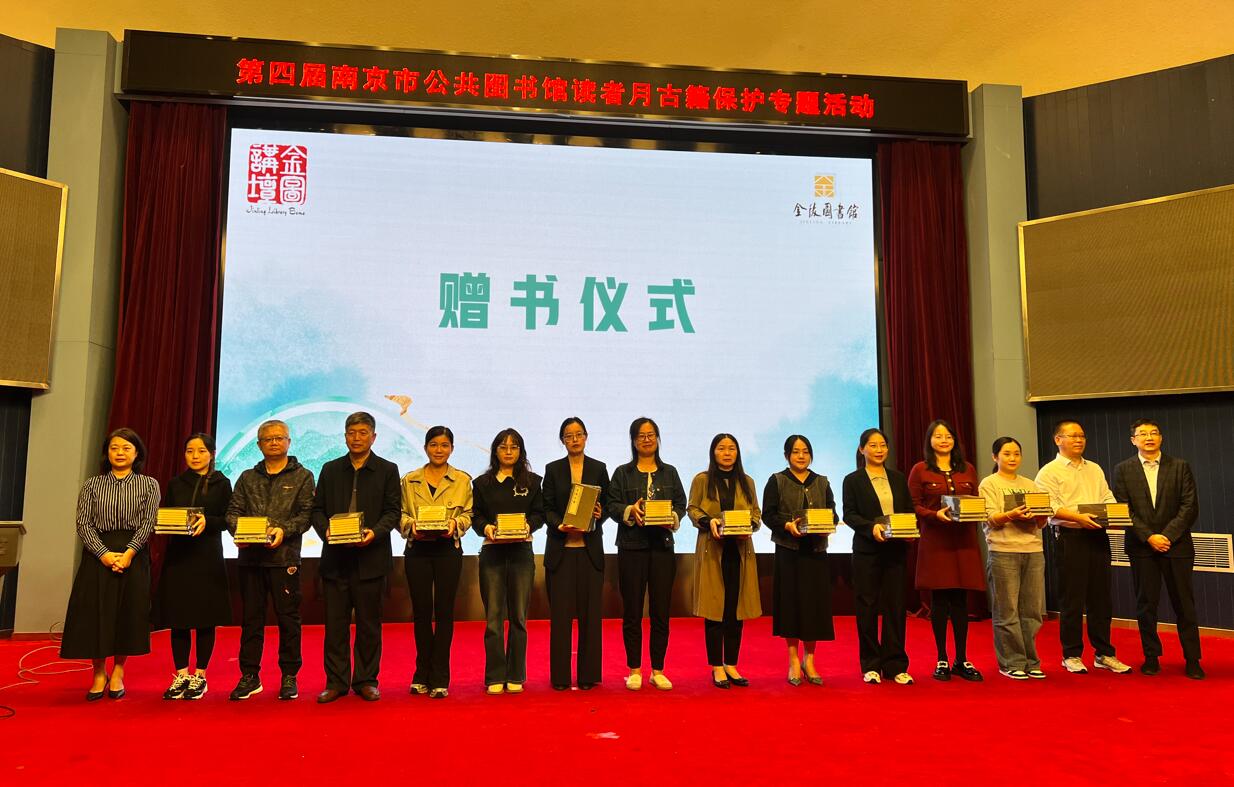 为配合此次讲座主题,金陵图书馆特别设立了一个馆藏明版闵齐伋朱墨套印本《考工记》仿真本的赠书环节。南京市文化和旅游局公共服务处处长王璐、金陵图书馆副馆长方炜出席了赠书仪式,并为13个区级公共图书馆代表授书。