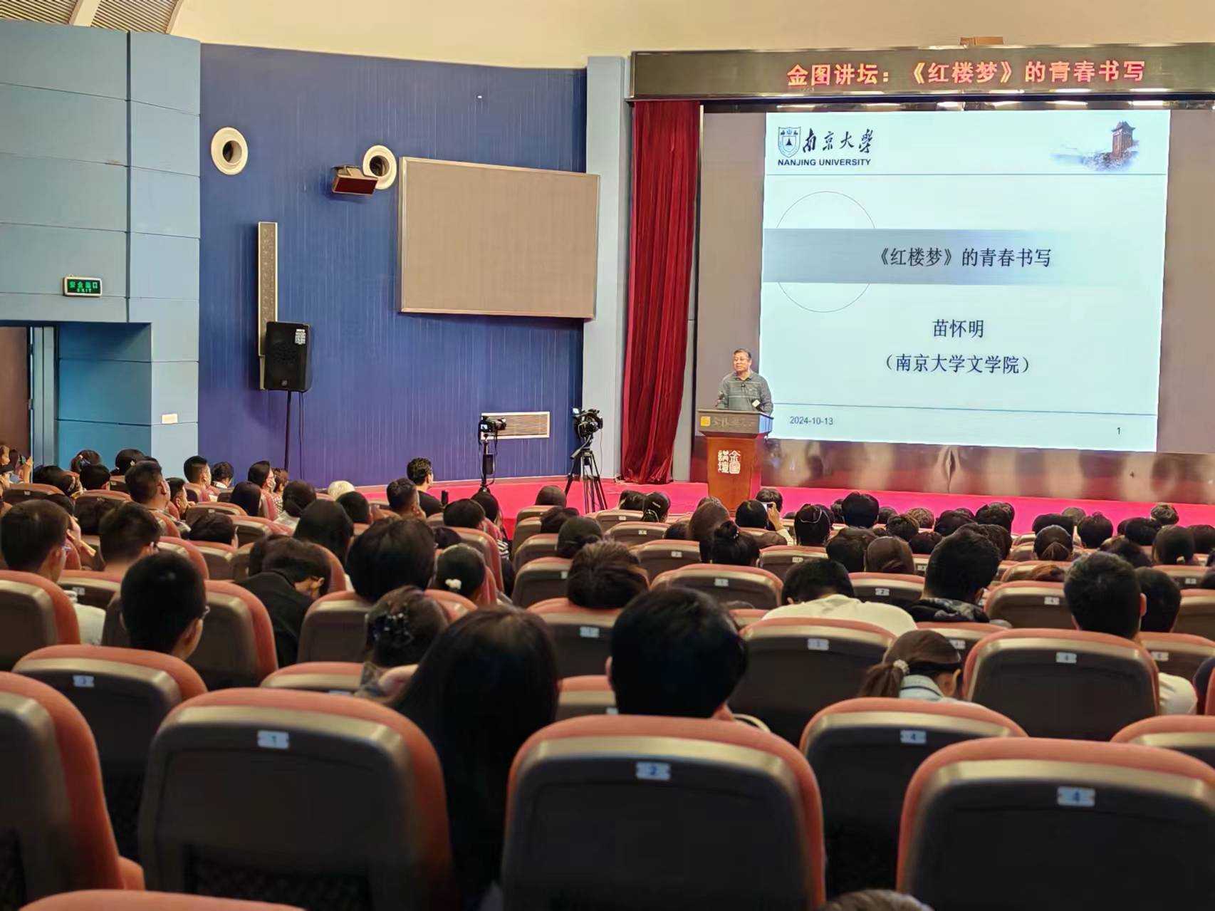 《红楼梦》作为“四大名著”之一,以其深刻的思想性和文学性,在中国文学占有极高的地位。2024年10月13日下午3点,由南京市全民阅读办主办,金陵图书馆、南京广电集团书香南京项目组承办的“2024共读南京”走进金陵图书馆,江苏省红楼梦学会会长,南京大学苗怀明教授做客“金图讲坛”,讲述“《红楼梦》的青春书写”,苗教授以其深厚的学术功底和独特的见解,为听众带来了一场思想碰撞与心灵共鸣的学术盛宴。本场品读会也是第四届南京市公共图书馆读者月重点讲座活动之一,讲座取得圆满成功。