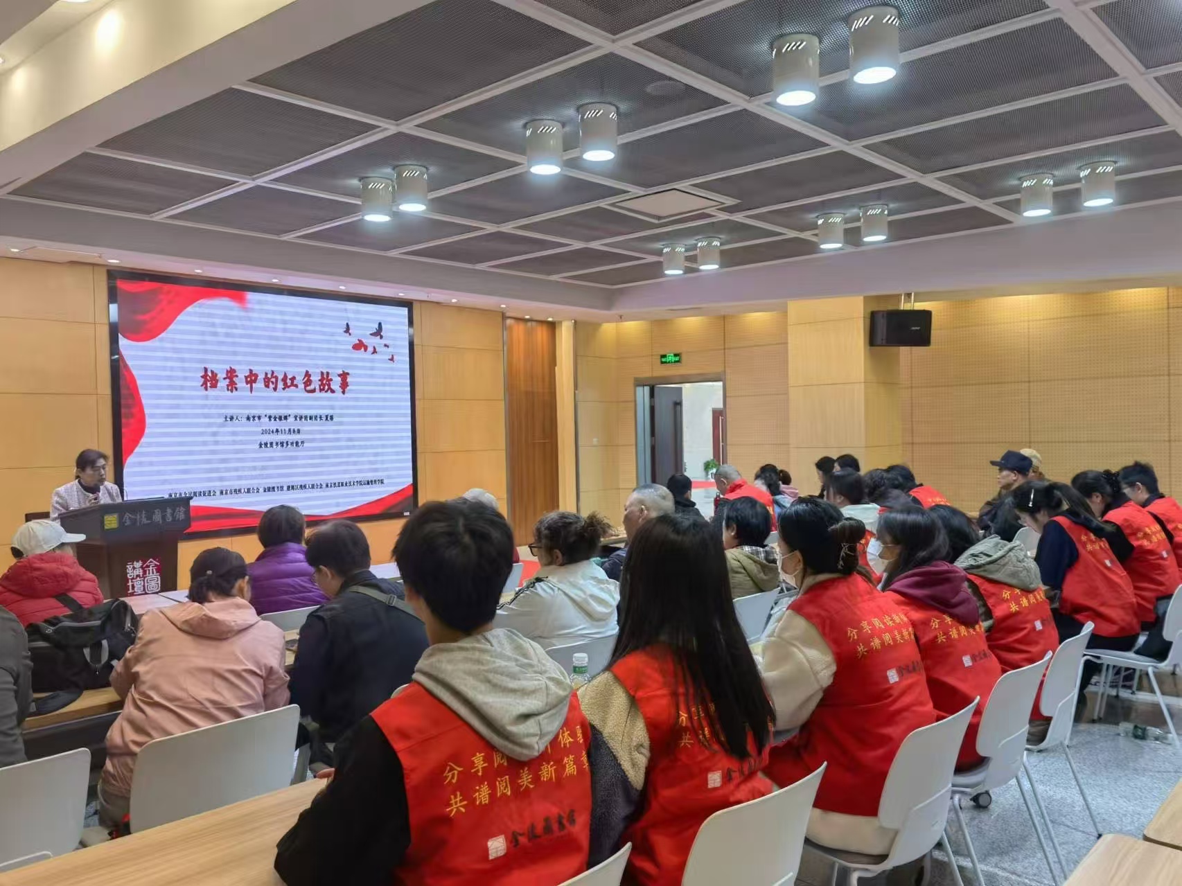 2024年11月8日上午9:30,阅见文博——书香满金陵系列活动之庆祝新中国成立75周年“信仰的力量”主题讲座在金陵图书馆举行。此次活动由南京市全民阅读促进会、南京市残疾人联合会、金陵图书馆、建邺区残疾人联合会、南京铁道职业技术学院运输管理学院主办,特邀南京市档案馆研究馆员、原一级调研员、南京市“紫金银辉”宣讲团副团长夏蓓担任主讲嘉宾。讲座以“档案中的红色故事”为题,带领读者们亲历红色档案、挖掘档案背后的红色故事与红色精神。