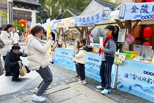 匀墨、上墨、盖纸、拓印、揭纸……市集开幕当天下午,金图推出的非遗雕版印刷体验活动,让市民游客跟着图书馆员亲自领略传统工艺的魅力,了解非物质文化遗产雕版印刷的知识和古人智慧。“一年好景君须记,最是橙黄橘绿时。”一首首脍炙人口的诗句,从金图花车摊位上传来。市集第二天,金陵图书馆阅读推广活动,通过知识竞答的方式,让读者在知识与欢乐中兑换奖品。“你知道国家宪法日是哪一天吗?”“《我的阿勒泰》作者是谁?”现场的大小朋友们,纷纷呼朋唤友,寻求场外援助。他们表示,通过此次活动不仅复习了旧知识也学习到了很多新知识。