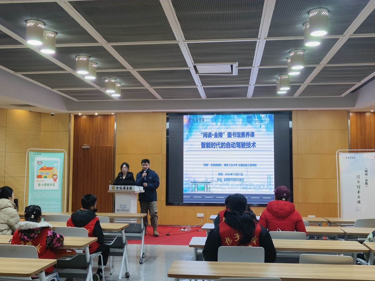 南京,这座历史悠久而又充满活力的城市,不仅以其深厚的文化底蕴吸引着世界的目光,更在科技创新的前沿领域展现出勃勃生机。2024年12月21日13:30,“阅读·金陵”图书馆素养课在金陵图书馆一楼多功能厅举办。金陵图书馆“阅美”志愿者、来自南京工业大学交通运输工程学院的同学们分享了人工智能与自动化驾驶技术相关的知识。