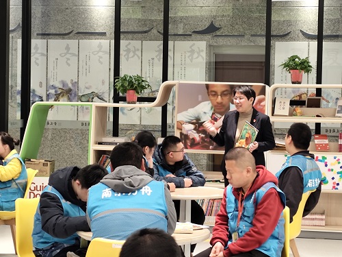 2025年3月28日上午,南京市方舟启智中心的同学们再次来到金陵图书馆,参加“融爱课堂 陪你阅读这个世界”主题阅读活动。南京方舟启智中心创建于2005年,致力于为智力残疾、自闭症和轻度精神障碍患者提供康复训练、职业养成、辅助性就业和住宿托养等服务。