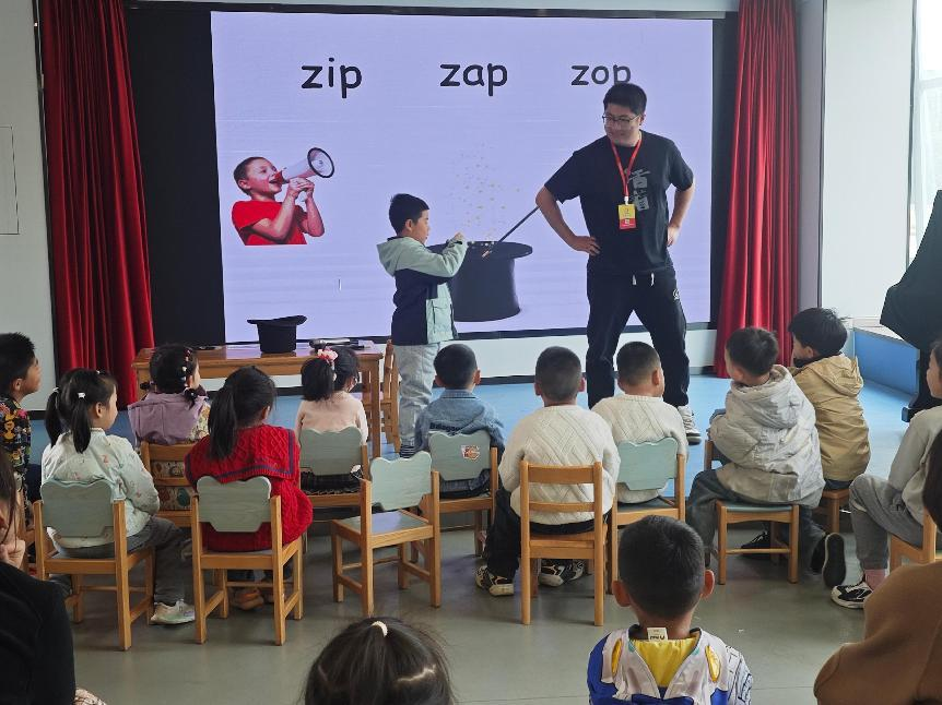 在本次“小水滴”英文读书会中,老师以生动活泼的方式,带领小朋友们一同探索了英文绘本《Zap》的奇妙世界。绘本讲述了一位魔术师运用独特的咒语,展开了一场寻找失踪小狗的冒险旅程。故事充满了魔法魅力,情节生动有趣,在老师精彩地演绎下,小朋友们听得津津有味,完全沉浸在充满魔法的故事里。