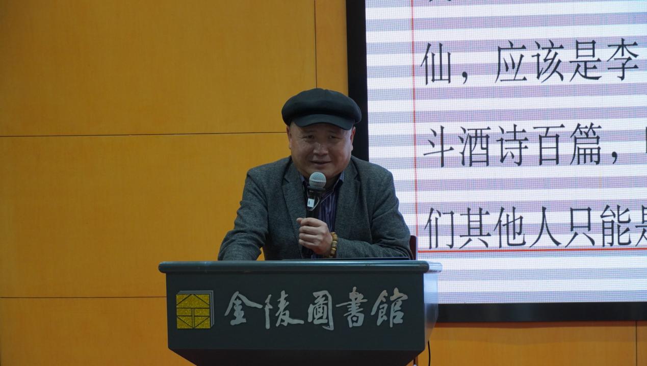 通过对《蜀道难》的讲解,陆教授详尽分析了李白诗歌的艺术特色:诗是我们回不去的家园,一个叫阿凡达的星球。如果说唐诗是那个星球上的灵魂之树,李白则是树上最惊艳的灵魂之花。李白无疑是大唐诗坛的魅影骑士,也是千年诗坛的魅影骑士。道法自然,李白的诗妙在自然。