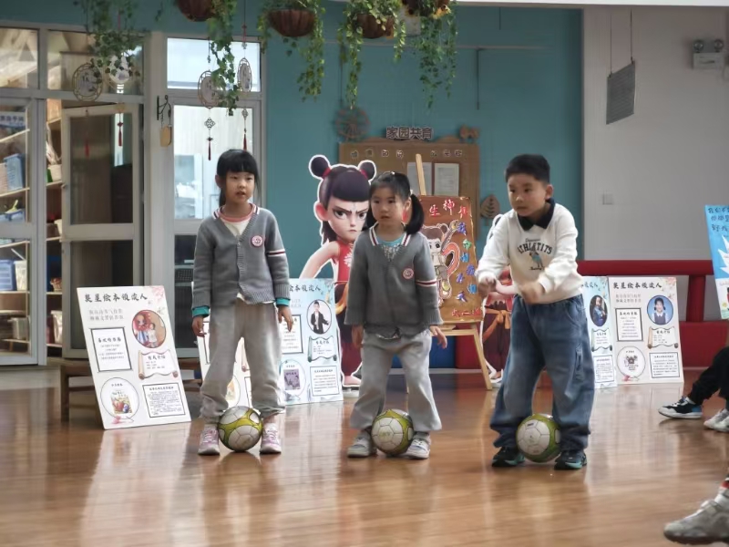 活动伊始,来自金陵图书馆少儿工作部的朱丽丽老师以生动有趣的讲述,将4·23世界读书日的起源故事娓娓道来。原来在欧洲的加泰罗尼亚地区,一直有着在4月23日互赠鲜花与书籍的传统。后来,联合国教科文组织为纪念和表彰对人类文明史作出卓越贡献的作家,正式将这一天定为世界读书日。此外,朱老师还从小朋友的成长需求出发,推荐了一系列适合幼升小阶段阅读的优质绘本,帮助孩子们提前调整心理状态,以从容自信的姿态迎接即将到来的小学生活。 在最受期待的绘本阅读环节,朱老师分享了科普绘本《帝企鹅》。通过精彩的讲解,小朋友们仿佛跟随帝企鹅一起,踏入了南极洲冰天雪地的世界,深入了解到这种南极洲最大企鹅独特的生存环境与繁衍方式。游戏环节更是将现场气氛推向高潮,小朋友们化身“企鹅爸爸”,模仿现实中企鹅孵蛋的模样,只见他们用双脚小心翼翼地夹住篮球,展开了一场别开生面的趣味比赛。大家你追我赶,既要保证速度,又要维持平衡,欢声笑语回荡在整个活动现场。活动最后,朱老师为奥星幼儿园的“小小领读人”颁发了奖状与徽章,鼓励孩子们在书籍的海洋中探索更广阔的世界。