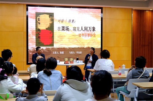 晨光未熹的菜场里,总有人间最鲜活的故事在流淌。5月10日下午,金陵图书馆多功能厅内,“菜场女作家”陈慧与书评人许金晶围坐对谈,将《在菜场,在人间》里的烟火气息带入温暖的午后。这场以“在菜场,窥见人间万象”为题的读书沙龙,没有华丽的修辞,只有贴着地面生长的文字与人生,让到场读者在摊位间的寒暄、货物的堆叠、生活的褶皱里,看见平凡生命的珍贵。