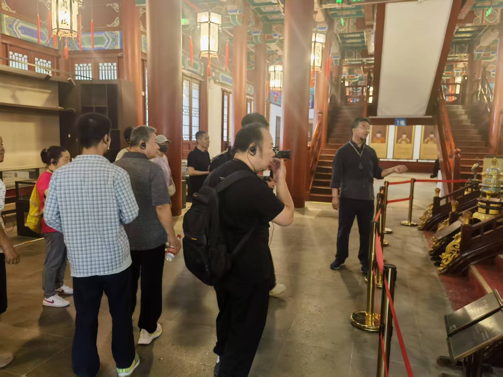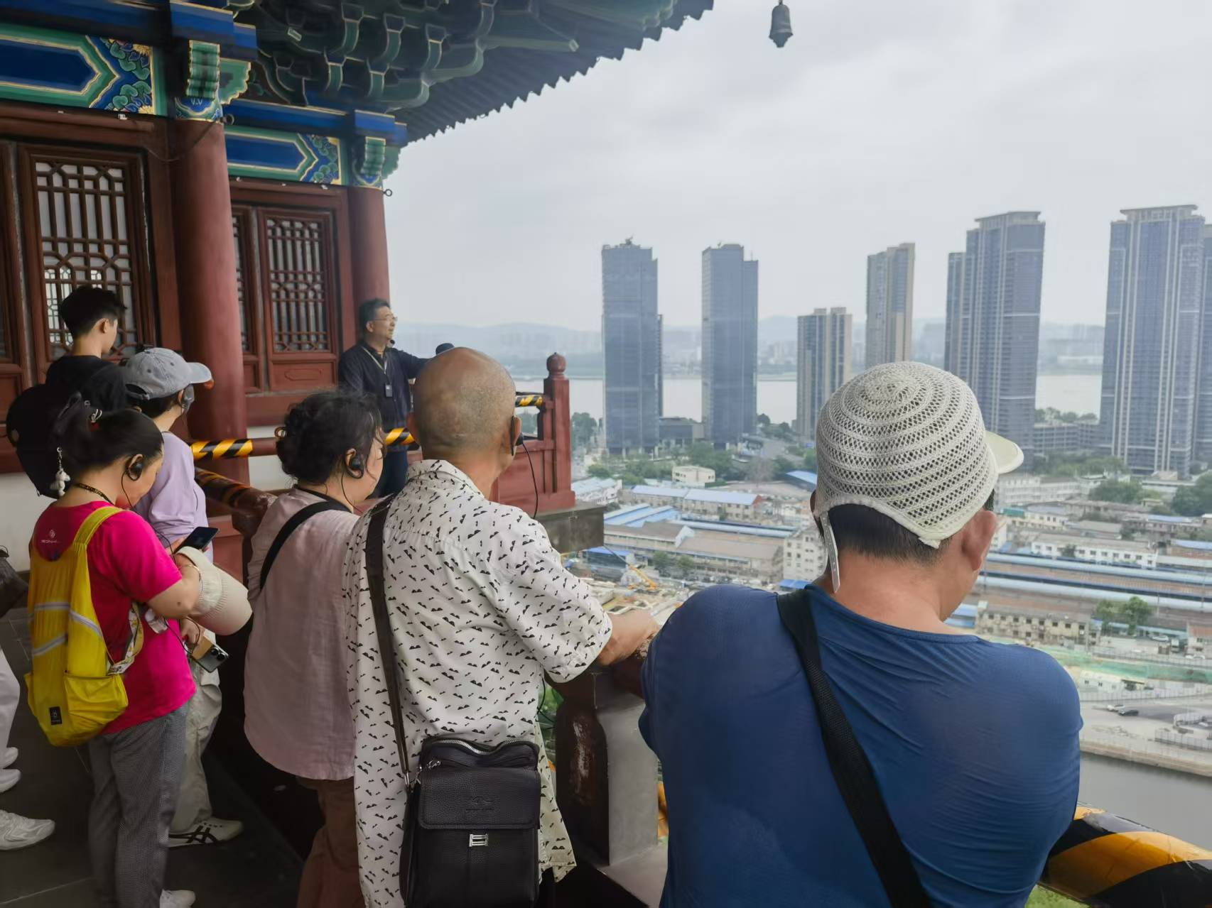 最后,在老师的带领下,残障朋友们登上阅江楼最高处,俯瞰南京城,视野格外辽阔。整个阅江楼华丽无比,处处精工细作,大家纷纷感叹工匠的技艺高超。