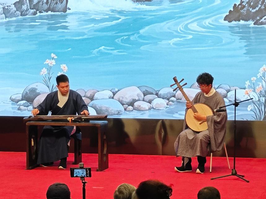 在琴乐表演环节,小读者们通过聆听古琴音律,感受到了四季主题名曲的独特魅力。《春风》《四大景》《茉莉花》《碧涧流泉》《二泉映月》《秋江夜泊》《发如雪》《梅花三弄》《秋水》等曲目依次上演,每一首曲子都如同一幅精美的画卷,将四季的美景与情感细腻地展现出来。这些曲目不仅展现了古琴艺术的博大精深,也为孩子们的心灵播下了传统文化的种子。