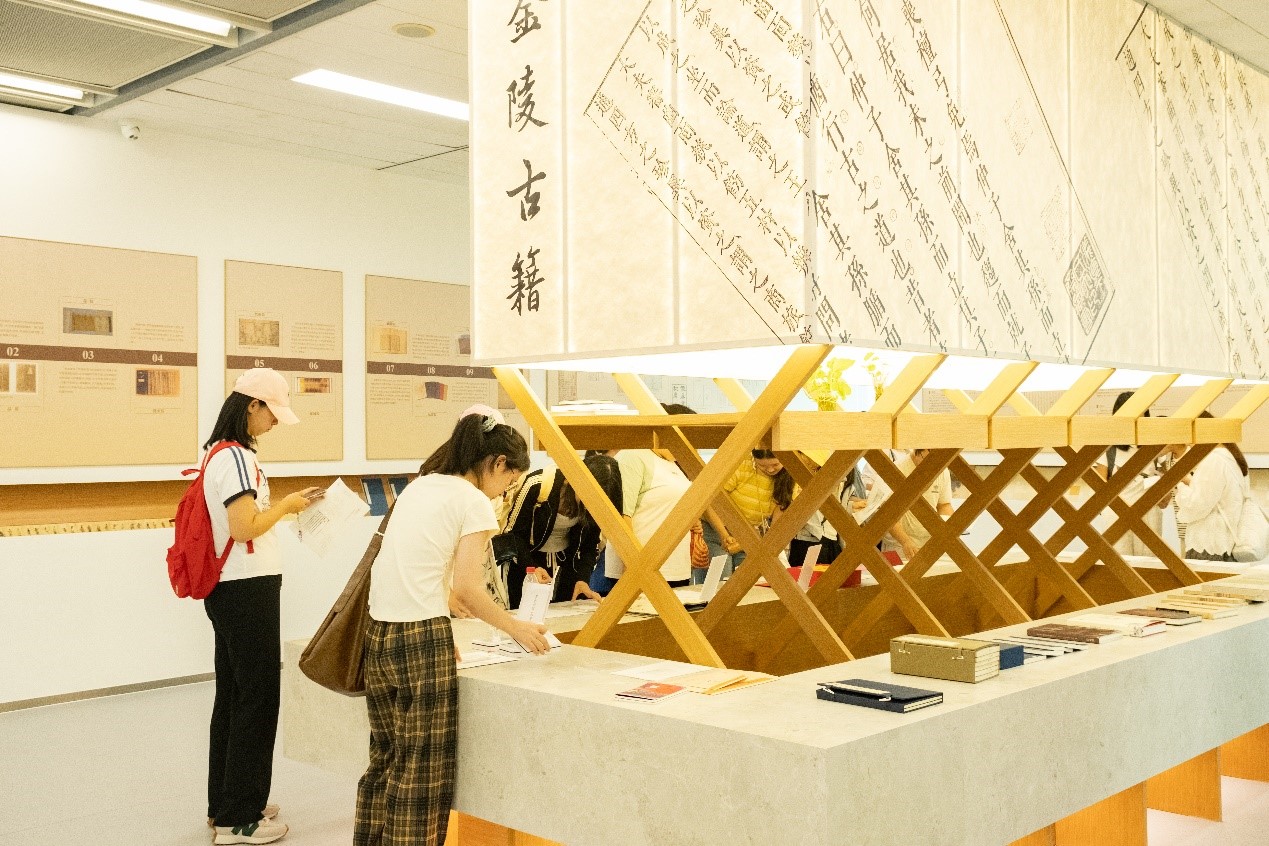 金陵图书馆古籍展陈体验空间,是为传承优秀传统文化、充分展示古籍保护成果而专门打造的特色场所。空间内不仅通过常设展览系统介绍古籍基础版本、版刻技艺及修复知识,还设有古籍专题展览区与文创展示区,多维度呈现古籍文化魅力。自开放以来,图书馆同步推出 “诗书传家远” 系列活动,进一步推动古籍的宣传推广与保护工作落地。