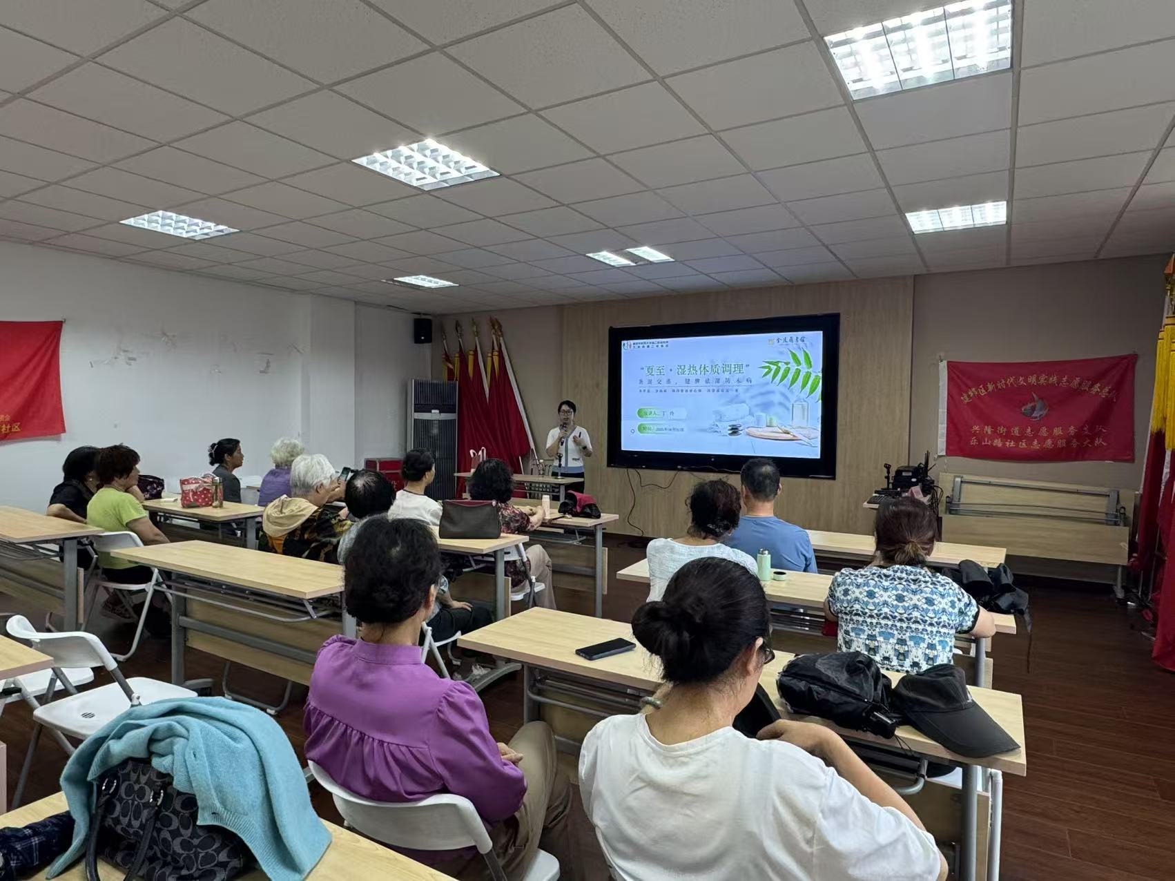 2025年6月20日14:30,由金陵图书馆主办的“夏至·湿热体质调理”养生讲座在乐山路党群中心顺利举行。南京中医药大学第二附属医院护士长丁玲围绕长夏湿邪特点与祛湿健脾养生知识展开分享,吸引众多市民参与。