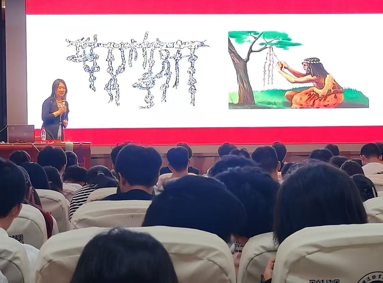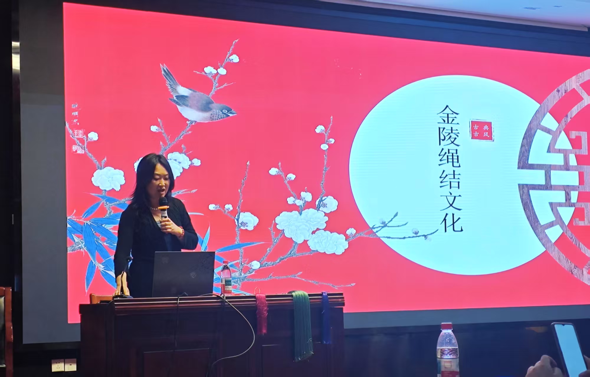 为深入落实中共中央办公厅、国务院办公厅印发的《关于进一步加强非物质文化遗产保护工作的意见》,推动非物质文化遗产内容贯穿国民教育始终,2025年6月18日,“金图讲坛”校园行走进南京铁道职业技术学院运输管理学院,特邀江苏省非物质文化遗产项目南京绳结技艺代表性传承人蒋妍侠于图书馆报告厅开展“非遗正青春,工匠进校园”——金陵绳结文化讲座。本场讲座由南京出版传媒集团、金陵书苑图书发行有限公司、金陵图书馆、南京铁道职业技术学院运输管理学院联合举办,150余名青年学生聆听了讲座。