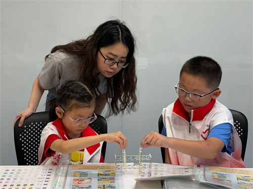 活动中,非遗体验环节格外引人注目。孩子们摇身一变成为小小匠人,运用雕版印刷技艺,在废弃纸张背面亲手制作出金陵图书馆限定版“科学的南京”logo。在沉醉于传统文化独特魅力的同时,老师不失时机地引导他们思考造纸工艺可能带来的水污染问题,让水资源保护的理念在孩子们心中扎根更深,理解也更为透彻。